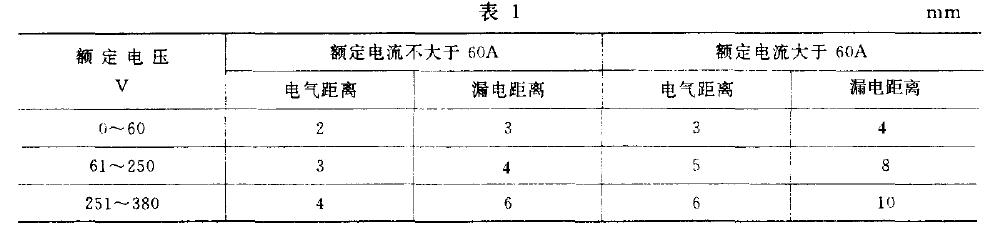 15控制裝置的電氣間隙和漏電距離不得小于表1的規(guī)定。